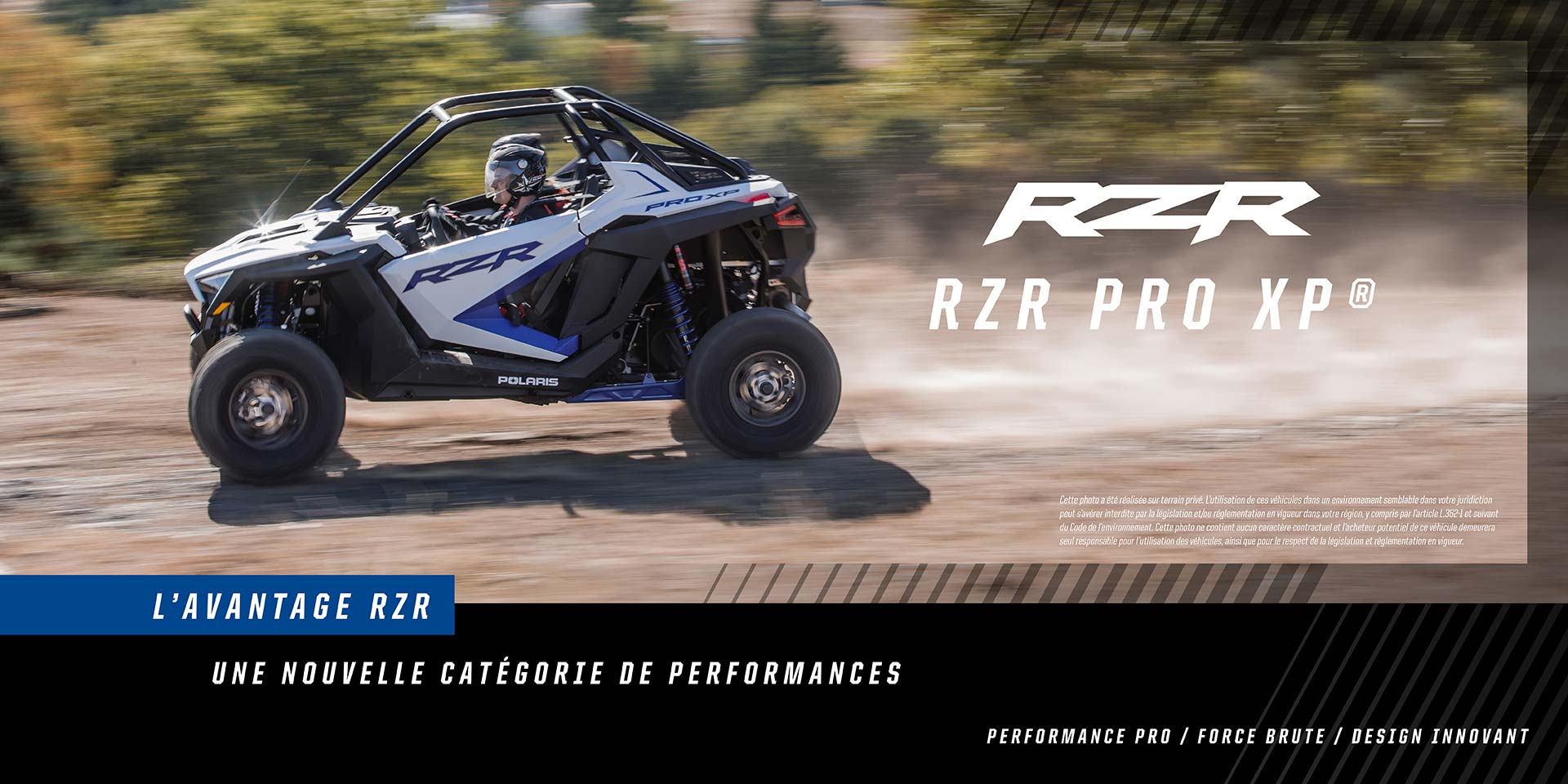 Depuis plus de 10 ans, Polaris a tracé la voie du marché du SSV sportif en fournissant la combinaison ultime de puissance, de suspension et d’agilité. Avec l’introduction du nouveau RZR Pro XP, Polaris place la barre encore plus haute grâce à un niveau de performance supérieur en termes d'agilité, de capacité et de polyvalence pour les pilotes les plus exigeants.